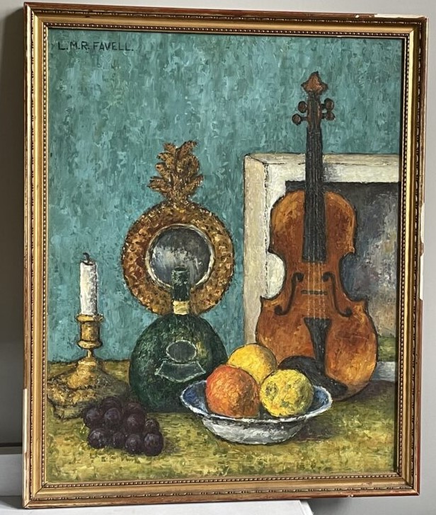 I believe his wife Lynda to have been a budding artist and in recent years several works have come onto the market, mostly online, of paintings from the 1970s signed L M R Favell.  An example is shown below.