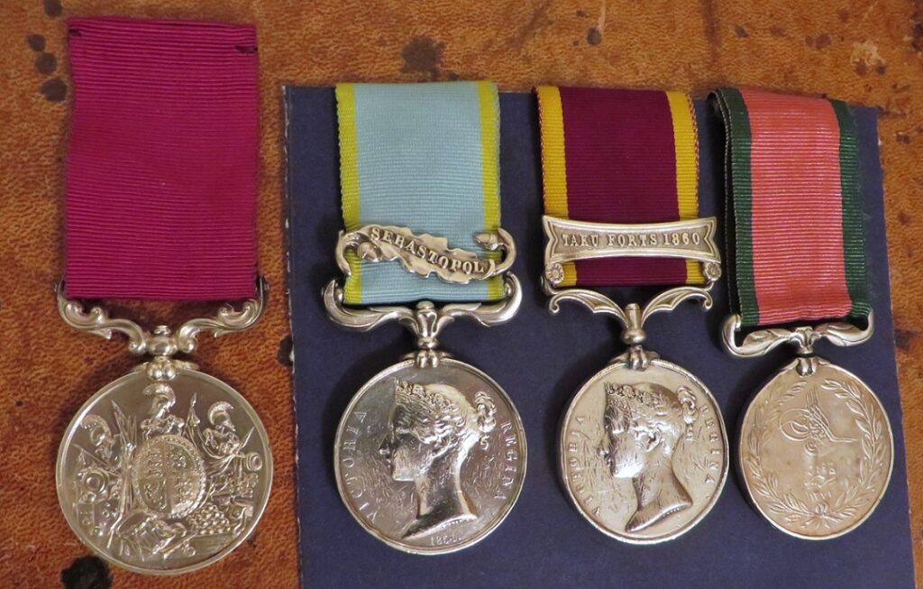 His 10-year service was completed in 1862 but rather than claim his discharge he promptly signed on for another 11 years. When George returned to England, he possessed medals awarded for his part in the Crimean war and China campaign. He was awarded a clasps for ‘Sebastopol’ and ‘Taku forts’. He also had a foreign award, the Turkish Crimean Medal, awarded by the Turkish Emperor to the allied armies. Shortly after his re-engagement things took a turn for the worse for George. Maybe he had second thoughts about re-enlisting or maybe he over celebrated in some way, but on 1st December 1863 he was tried and impeached by Court Marshal for absence. Two days were discounted from his service for 1st and 2nd of December and are excluded from counting towards his service or his pension. Possibly he was sentenced to 2 days in the ‘Glass House’ or some other form of punishment. He was stripped of his Sergeant’s rank and returned to the rank of Private, loosing his good conduct pay into the bargain, although he did manage to get his back within a year.