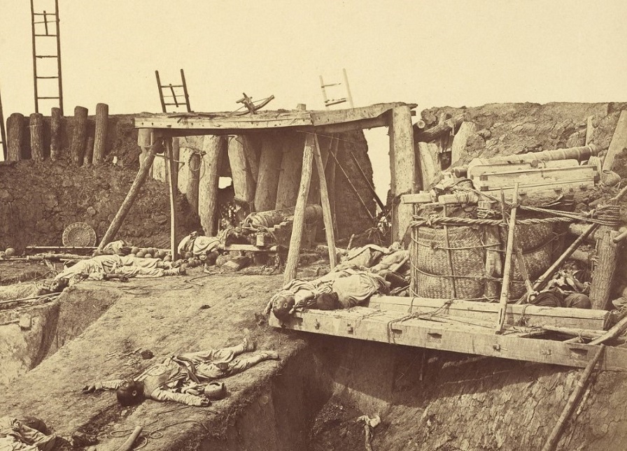 After the Crimea, the 31st were assigned to the Maltese island of Gozo before moving on to King Williams Town on the Cape of Good Hope where George’s service record shows he stayed for 4 months. It was in April 1857 that George was awarded his first good conduct pay of 1 1/2d a day. In 1859 the regiment was moved to Poona in India and readied for active service in China and again reference to George’s service record shows that he was stationed in the East Indies for 1 year and 4 months. It was on the 25th December 1859 that he was promoted to the rank of Corporal and by April 1860 his good conduct pay was increased to 2 1/2d a day. When the Mandarins broke the Treaty of Tienstin in 1860 the British armies moved into China and arrived at the Peiho river and commenced the 2nd Opium War. The Taku forts were the main objective and were taken on the 21st August and a truce was called on the 24th October. The 31st became part of the new garrison at Tienstin and remained there for over 3 years, not returning until 1863. While in China, George was promoted to the rank of Sergeant.