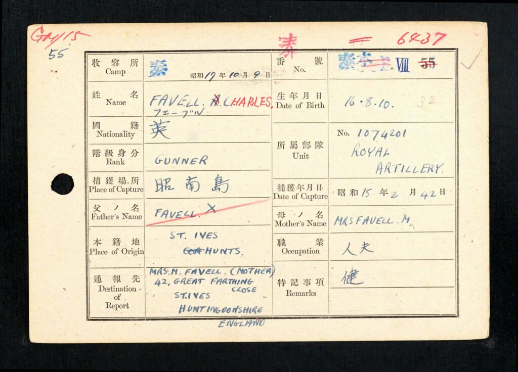 Charlie had actually been captured by the Japanese and was taken prisoner in the February of 1942, and not released until 1945.