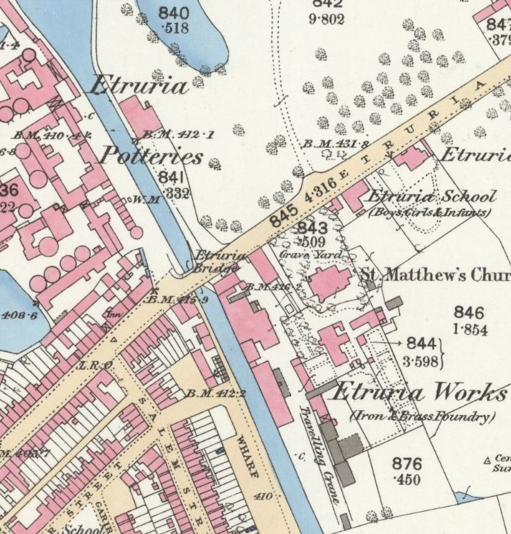 His move to Staffordshire was due to becoming a partner in the Etruria Iron Works in Stafford. An iron and brass foundry in the midst of the potteries, in Stoke-on-Trent. On the bank of the Trent & Mersey canal, it traded under the name of George Kirk & Co, the original founder.