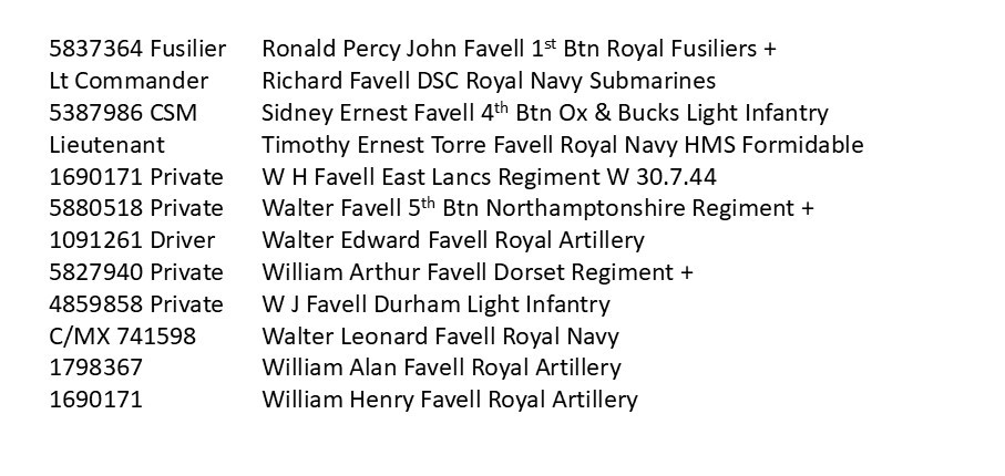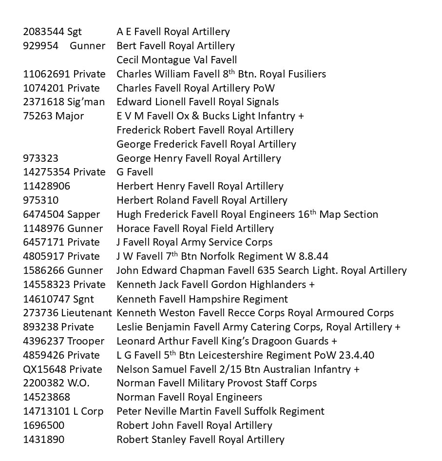 The lists below cover all those for whom a record has been found indicating that served in the armed forces in WW2. It is by no means exhaustive and is more likely to have found those serving in the army. While some Navy records have been found, there are not as yet, any for the RAF. Where the person died in service and is featured on the ‘fallen’ page, the entry is marked with a cross. Where there are records to show the person was a prisoner of war then an approximate date is also shown.